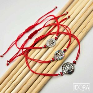 ( 0 )Гривна от червен/черен конец със сребърни елементи в различна символика.