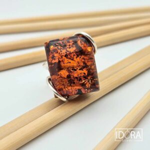 Размер: ринг регулируем, в момента 18,6 мм., кехлибар 18,4×23,0 мм.