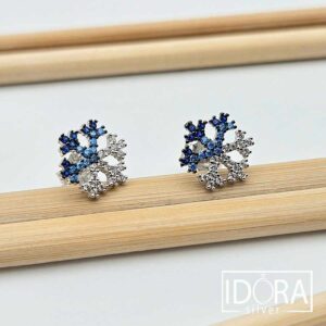 Снежинки изваяни с прецизност блестят с фин, кристален чар в симетрична, чиста форма, напомняща за магията на тихо падащ сняг. Малките циркони по върховете им улавят светлината и я пречупват в искри, носещи шепот от зимна приказка.