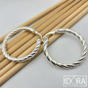 ( 0 )Масивни халки в изящна форма, с усукана повърхност, носещи усещане за движение, дори в покой. Полираното сребро улавя светлината и я плъзга по спираловидните линии, създавайки мек блясък с медитативна дълбочина.