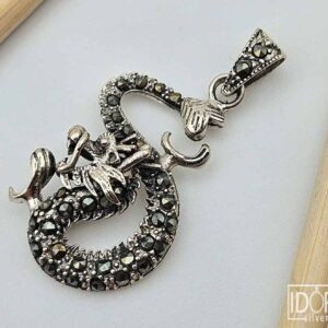 45,00 лв. / 23,01 €Медальон в стилен и загадъчен дизайн в интерпретация на величествен дракон, символ на сила, мъдрост и защита. Обсипан с МАРКАЗИТИ в импровизация на детайлно изваяни люспи и застинал във форма, сякаш се носи във въздуха с усещане за динамика и живот. Медальонът съчетава традиционни източни мотиви с модерна естетика и е подходящ акцент за любителите на мистиката, митологията и уникалните бижута.