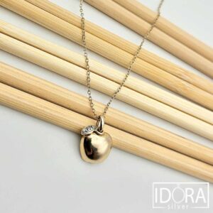 ( 0 )Нежно сияние в лека позлата, уловено в малък, изящен символ на изкушението - фина верижка, по която деликатно се спуска миниатюрна ябълка – гладка, огледално полирана, меко отразяваща светлината, допълнена с подвижно листенце, декорирано с блестящи камъчета.