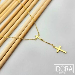 ( 0 )Фина верижка нежно е събрана от два деликатни кръста – символи на вяра, чистота и вътрешна сила. Топлият блясък на позлатата и символизмът вплетен в дизайна, оставят осезаемо усещане за силно присъствие.