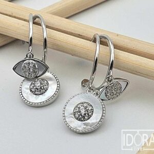 62,00 лв. / 31,70 €БЯЛ СЕДЕФ с инкрустирани мини ЦИРКОНИ в двойка подвижни елементи, потрепващи в лицевата част на двуредови отворени халки. Италиански дизайн, събрал минималистичен ефект и деликатно загатната символика.