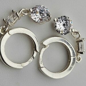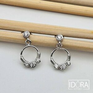 24,00 лв. / 12,27 €Изискани и нежни обеци в минимализъм и артистичен детайл в елегантната форма на фини халки с три малки циркона, вградени в основата на кръгчето, създавайки усещане за симетрия и изтънченост.