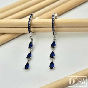 57,00 лв. / 29,14 €Истинско превъплъщение на елегантността и финеса! Впечатляваща нежно извита форма, прегръщаща ухото с деликатен, модерен щрих. По дъгата на лицевата част са инкрустирани малки, наситено сини камъчета а висящият елемент е от спускащи се три капковидни сапфирено сини циркона с деликатна визия за лукс. Родиево покритие и сигурно английско закопчаване.