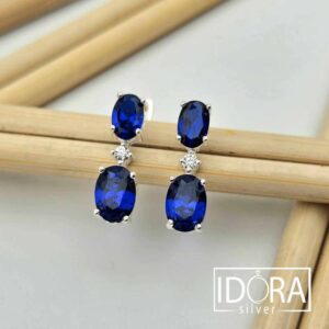 Сапфирено сини циркони – блестящ дует, превърнат в изящни обеци със стабилно английско закопчаване. Дълбокият им цвят, напомнящ нощно небе, е съчетан с изчистен дизайн, който подчертава тяхната красота и блясък.