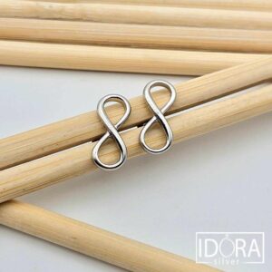 Символът на безкрайността оживява в нежни обеци от италианско сребро – вечният знак на любовта, вярността и хармонията, оставяйки усещане за безвремие, чистота, елегантност и неподвластна на времето красота.