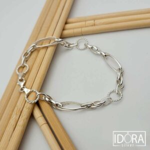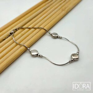 Дизайн пропит от италиански минимализъм с прецизна изработка и акценти от дисковидни елементи.Деликатна и едновременно модерна, тази гривна е символ на изтънченост и фин баланс, подходяща както за ежедневна елегантност, така и за специални поводи.