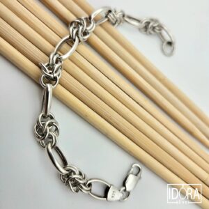 89,00 лв. / 45,50 €Изящна сребърна гривна, с оплетка от сложни възли, символ на свързаност, сила, стил и елегантност. Лъскавата повърхност на среброто улавя светлината по начин, който подчертава прецизната изработка и вниманието към детайла.