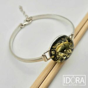 149,00 лв. / 76,18 €Централно разположен КЕХЛИБАР, демонстриращ ефектно смесване на включения и нишки, пленени в малка галактика, пълна с дълбочина и движение и напомняща на космическо цвете или избухнала звезда. Сребърната основа е с изчистен дизайн, изцяло пазещ вниманието за мистичната красота на кехлибара. Гривната е подходящ аксесоар за хората, обичащи да носят изкуство със себе си – загадъчна, стилна и с нотка вълшебство.