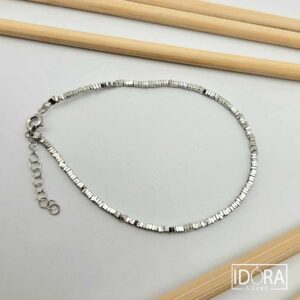 Изящество, италиански минимализъм и фина изработка, вложени в гривна от наниз на множество малки, квадратни и правоъгълни елементи с огледално полирана повърхност, улавящи и отразяващи светлината по неповторимо ефектен начин. Деликатният блясък създава усещане за елегантност, а минималистичният ѝ стил я прави универсален аксесоар.
