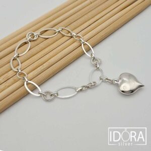 Изящност с внимание към детайла, пълна с усещане за нежност – гривна от елегантно свързани овални халки, чието редуване между гладки и фино орнаментирани елементи напомня за ритъм и хармония. Сърца в роля на акцент, улавят и отразяват светлината в топли отблясъци, пълни с усещане за чистота и романтика, носещи обещание за вечна нежност.