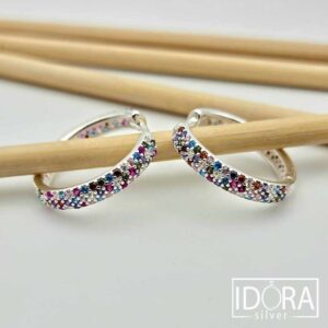 ( 0 )Изящни халки, носещи усещане за елегантност, светлина и движение – фина дъга от сребро обсипана с многоцветни циркониеви камъчета, блестящи като искри в мозайка и подредени в хармоничен ритъм. Смелата игра на цветовете и изчистената линия излъчват съвременна женственост, настроение и неприкрита свобода.