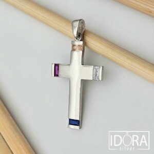 ( 0 )Кръст с гладка и спокойна повърхност с малки цветни циркони в краищата - носещ спомени, изгладени от време и вяра. Всеки от тях е като посока, шепот на различно усещане и очакване.