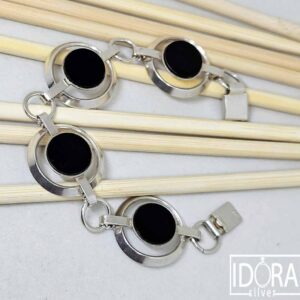 119,00 лв. / 60,84 €Кръгли плочки ЧЕРЕН ОНИКС с гладка полирана повърхност като акцент в елементите на масивна сребърна гривна с модерен дизайн основан на липса на излишни елементи и фокус върху основната форма.