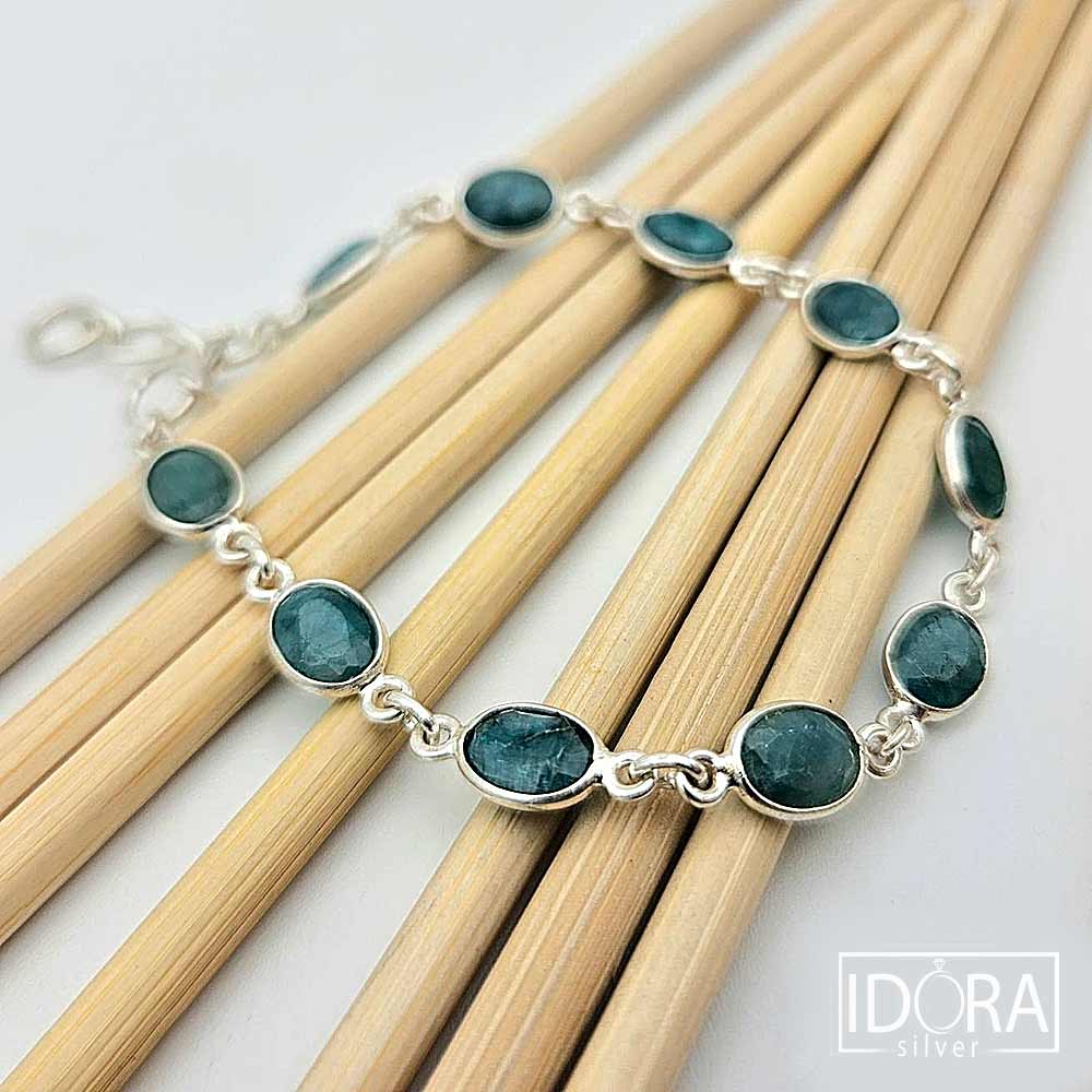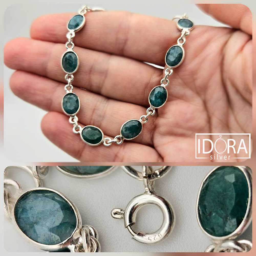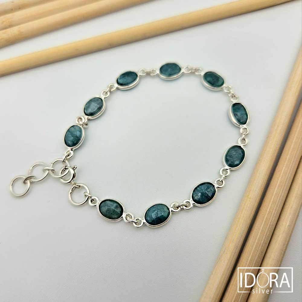 Двустранно фасетирани ИЗУМРУДИ в истинско бижу на елегантността и естествената красота – сребърна верижка инкрустирана с камъни, носеща усещане за спокойствие и дълбочина. Всеки камък е обрамчен с фина рамка, която подчертава естествената му текстура и блясък. Гривната не просто допълва визията, а разказва история за свобода, за стил и за силата на фините детайли.