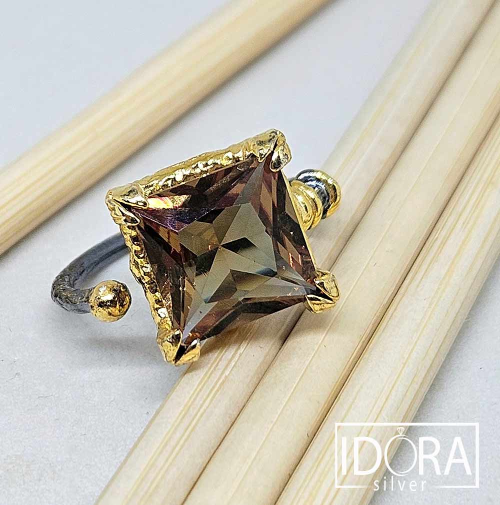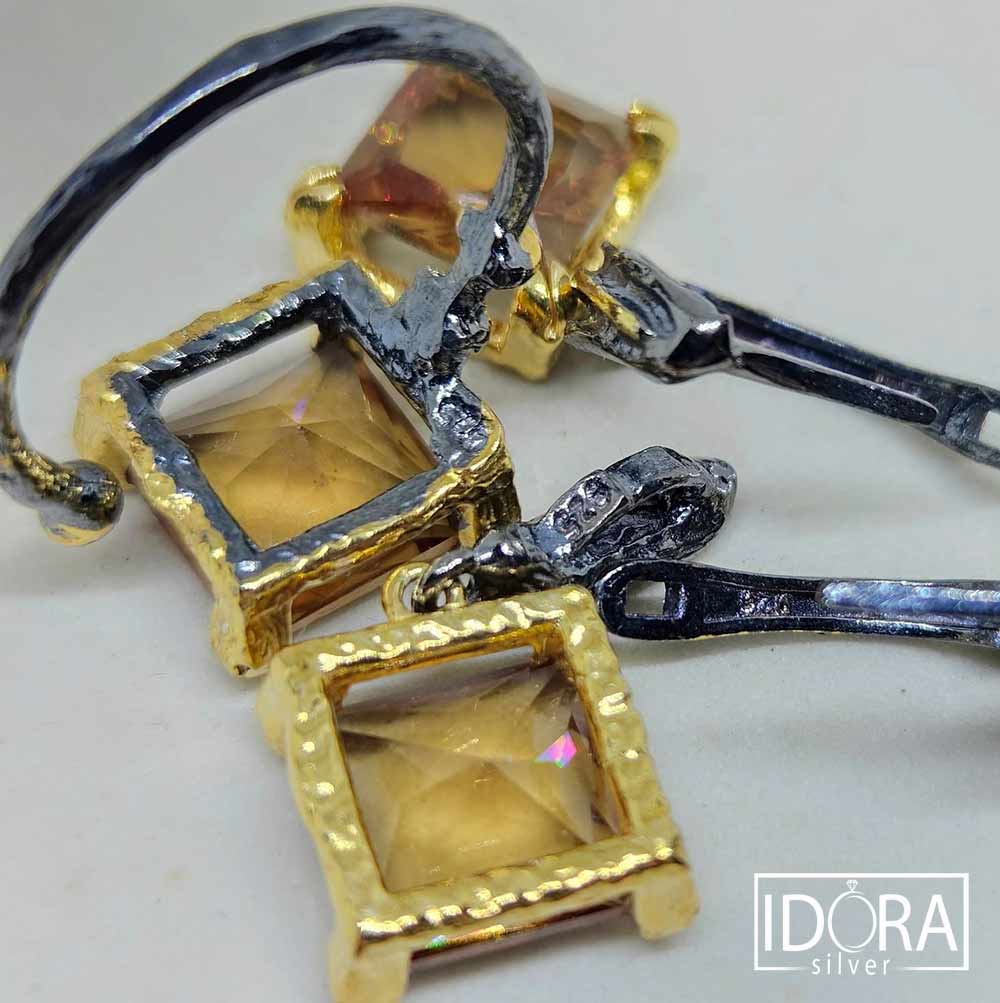 Авторска изработка на бижута с покритие от черен родий и позлата, подчертаваща нюанса на аристократичната магия на камъните.