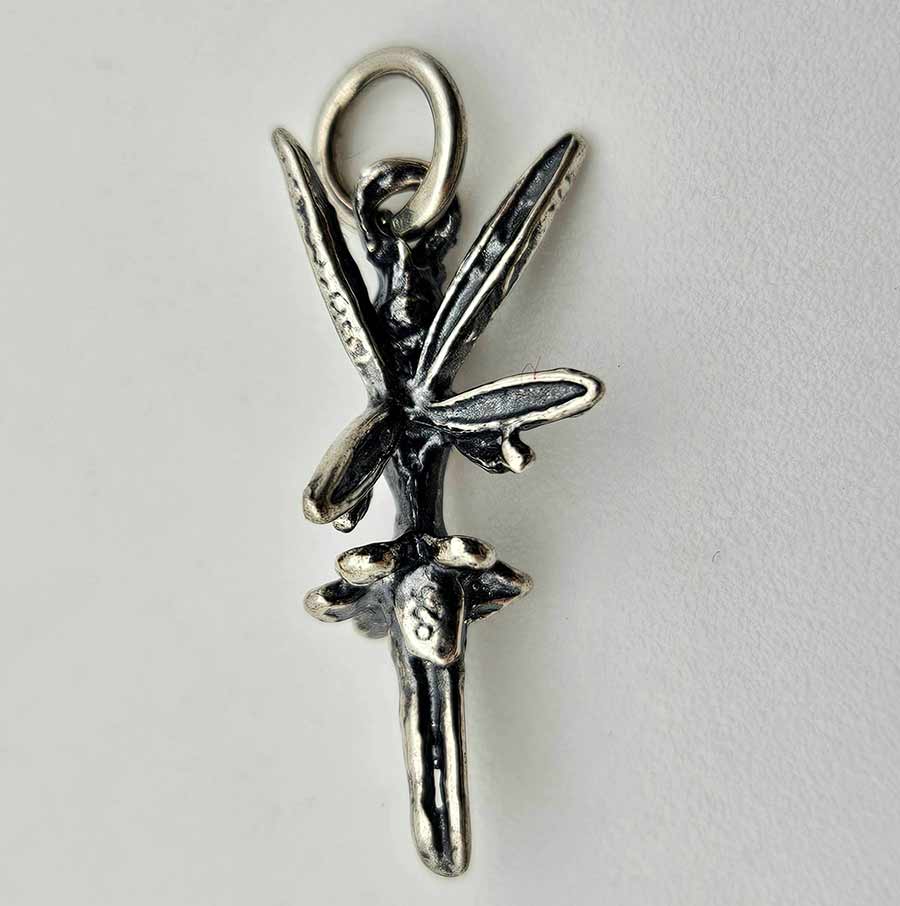 Миг на полет, уловен между въздуха и покоя – във фините криле на малка, стилизирана фея, превърната в изящен сребърен медальон. Изваян с деликатна прецизност и леко мечтателно излъчване, той носи усещане за магия, свобода и нежна закрила, сякаш пази тайна от свят, изпълнен с чудеса.