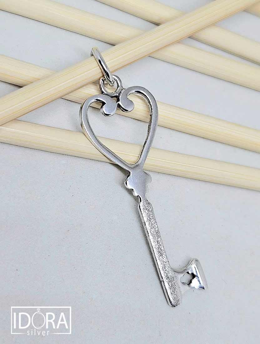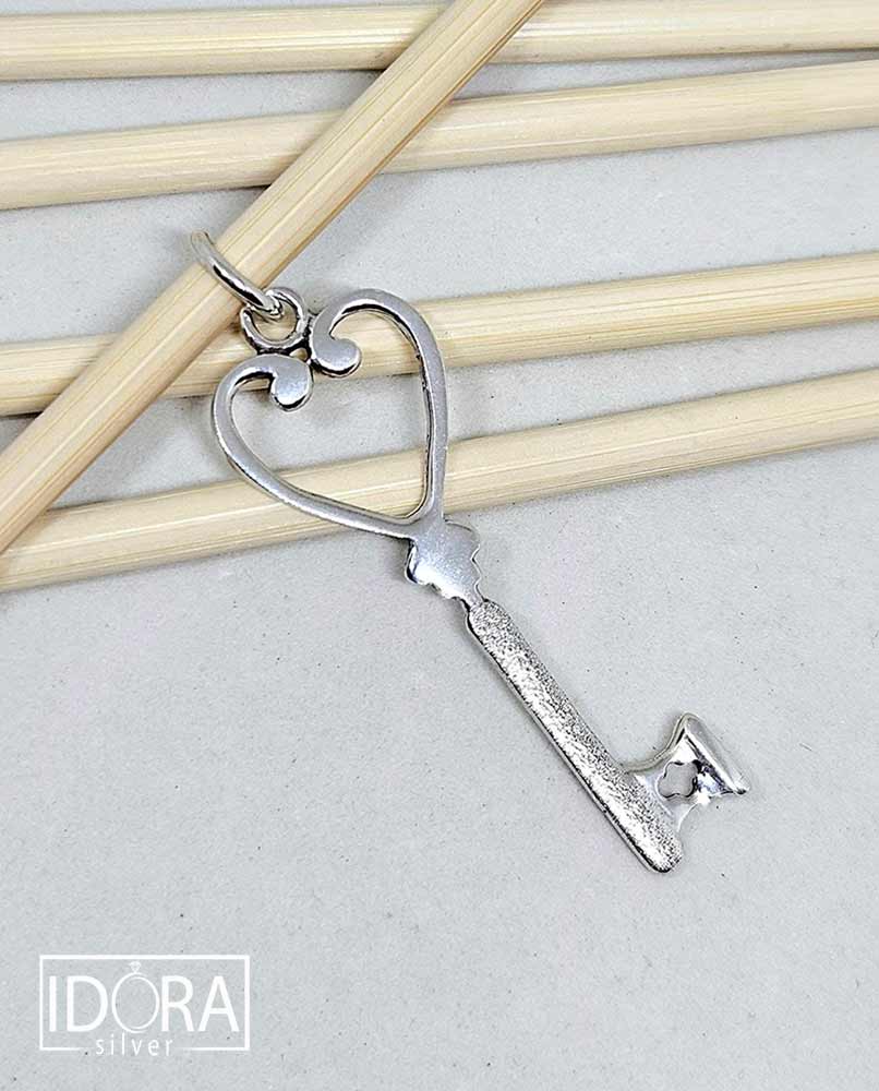 Сребърно сърце, извайвано като символ на любов и тайнство, което държи ключа към самото себе си – знак за доверие, обич и скрита дълбочина на чувствата. Лицевата му част е с диамантирана повърхност, улавяща и разпръскваща светлината във фини проблясъци, придаващи още повече нежност и изисканост на композицията.