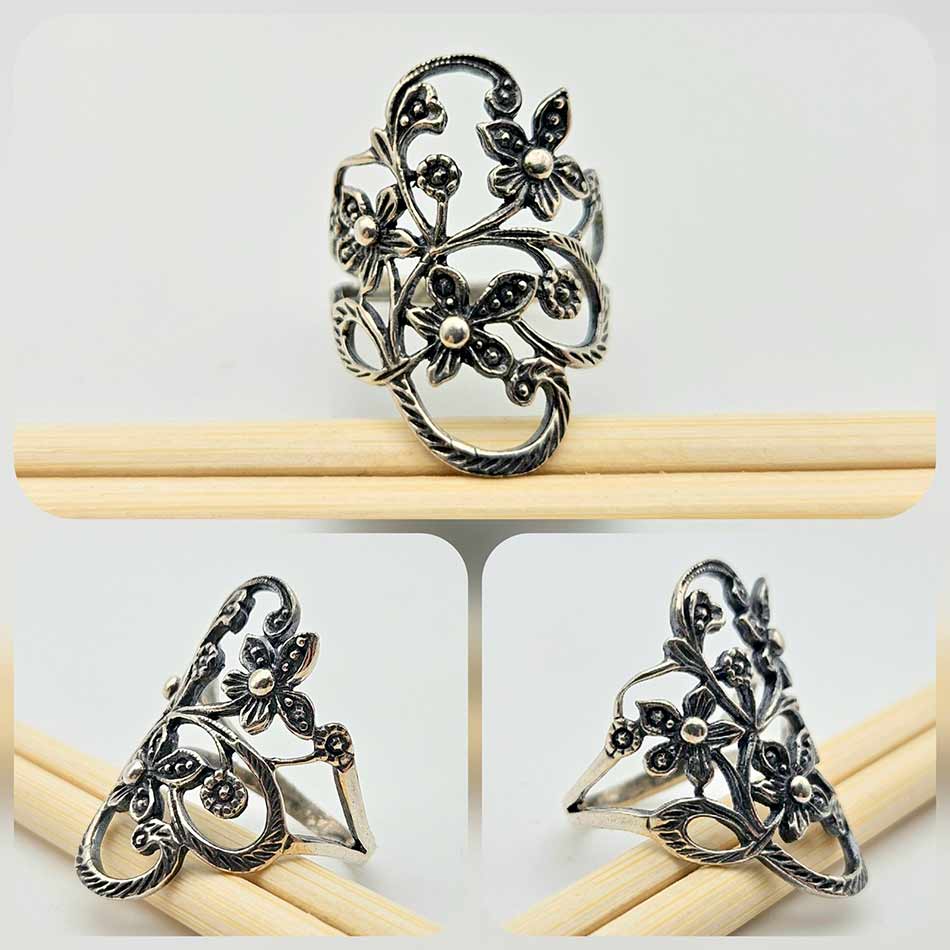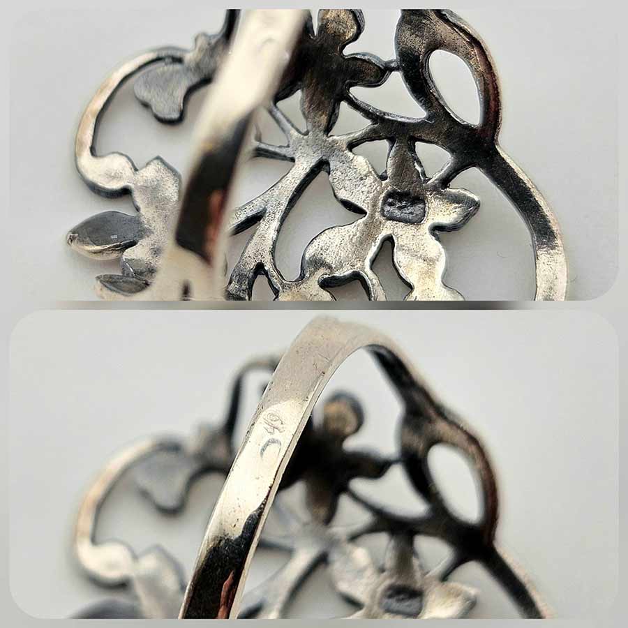 Широка, величествена корона, богато обвита във флорална орнаментика, в която всяко листо и всяко цвете сякаш носят собствена история. Сред преплитащите се форми и нежни извивки дискретно са вплетени символите на безкрайността и обичта — почти скрити, но вечно присъстващи, като тих шепот на непреходност.