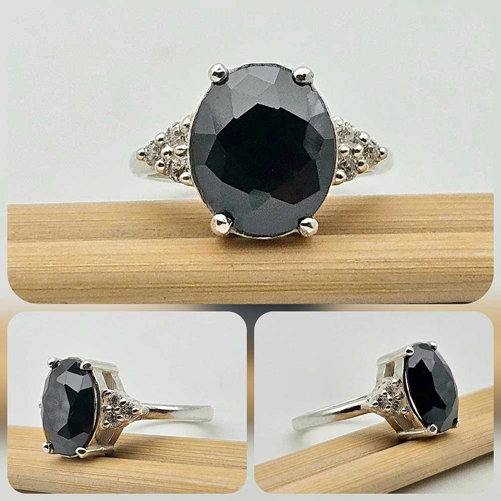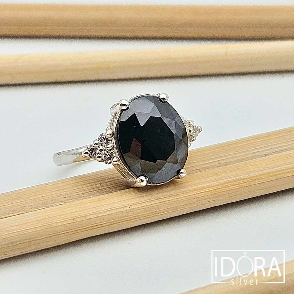 ОБСИДИАН в магия на елегантността на нощ без звезди, носеща тайнственото очарование на безкрайността. Камъкът поглъща светлината и я превръща в загадка от спомени, отразени в огледалото на фасетираната повърхност. Малките блестящи акценти от циркони в двете страни са като светулки, осветяващи пътя на красотата.