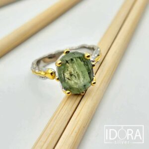 Изтънчена елегантност и мистичен чар в прецизно изработен пръстен с детелинов елемент от черен оникс — символ на сила, баланс и изящество. Меките отблясъци на среброто подчертават дълбочината на камъка, обгърнат от изящна рамка с миниатюрни сребърни зрънца, носещи усещане за детайлност и лукс.