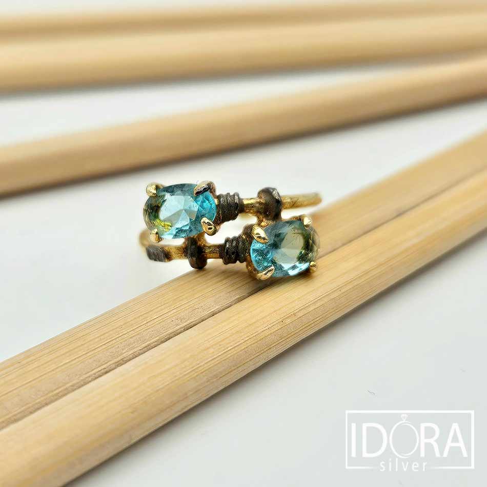 Магнетичен чар в нежна симфония от хипнотизиращия син цвят на АКВАМАРИНИ и позлата, съчетали елегантност и артистичност в дизайн, обединил класически и съвременни елементи, подчертавайки красотата на фино фасетираните къпоценни камъни.