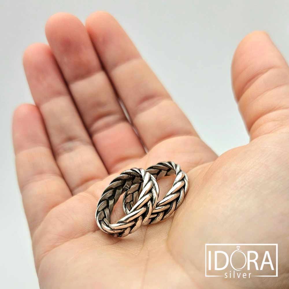 Вплетени нишки от сребърна тишина, помнещи докосването на занаятчийските ръце и усетът на старинно умение – халката е изтъкана от плетеница на светлина и сянка, спокойствие и движение едновременно.