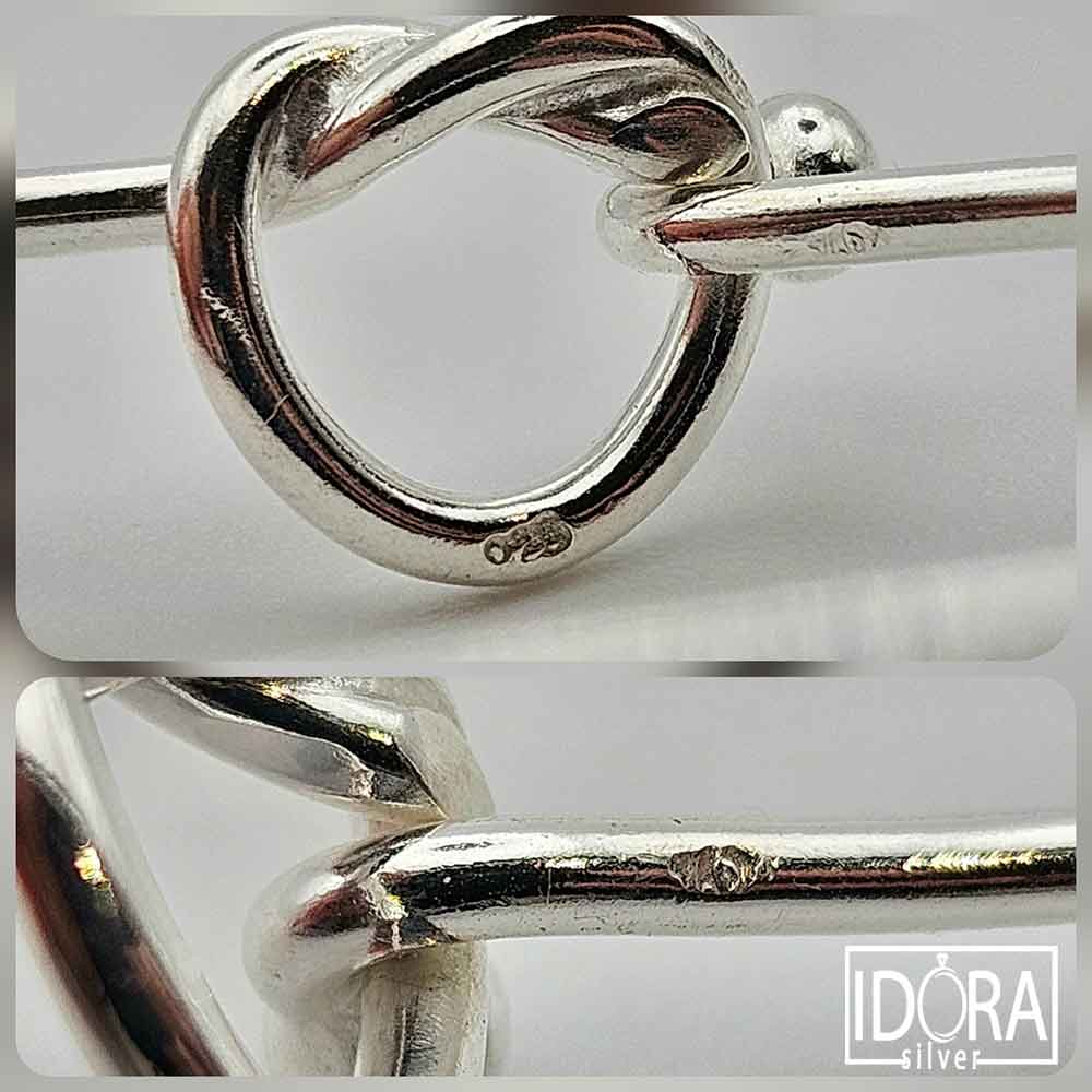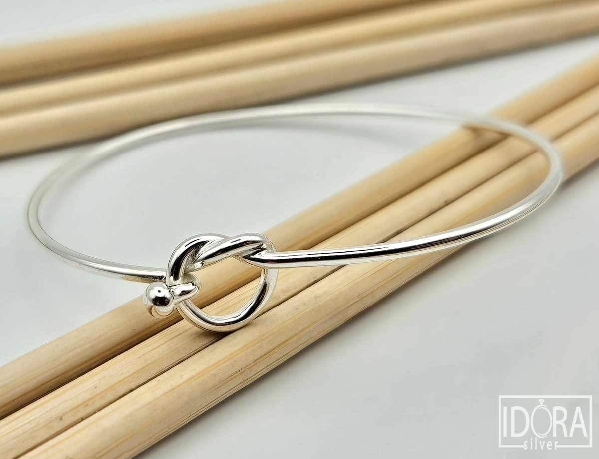 Сребърна гривна, сътворена от съвършена хармония между минимализъм и елегантност, носеща мощния ефект на символиката. Тя обгръща китката с лекота и изтънченост, като централният елемент – прецизно оформен възел във формата на сърце – съчетава нежност и стабилност. Този символ напомня за връзките, които ни свързват с най-ценното в живота: любов, приятелство и вярност. Гривната е израз на изискан вкус, емоционална дълбочина и неподвластна на времето красота.