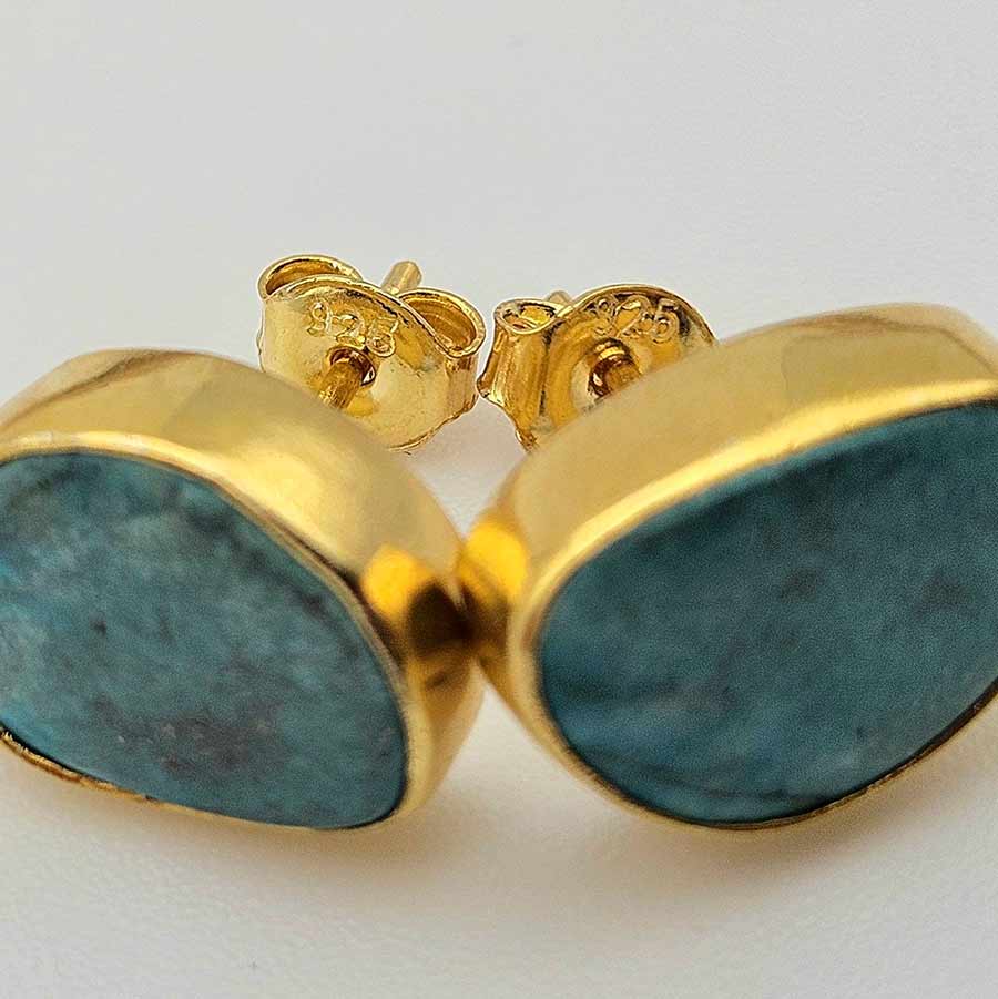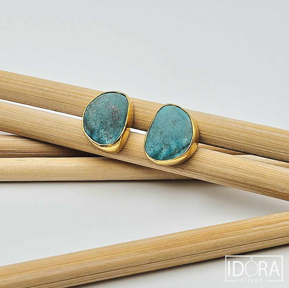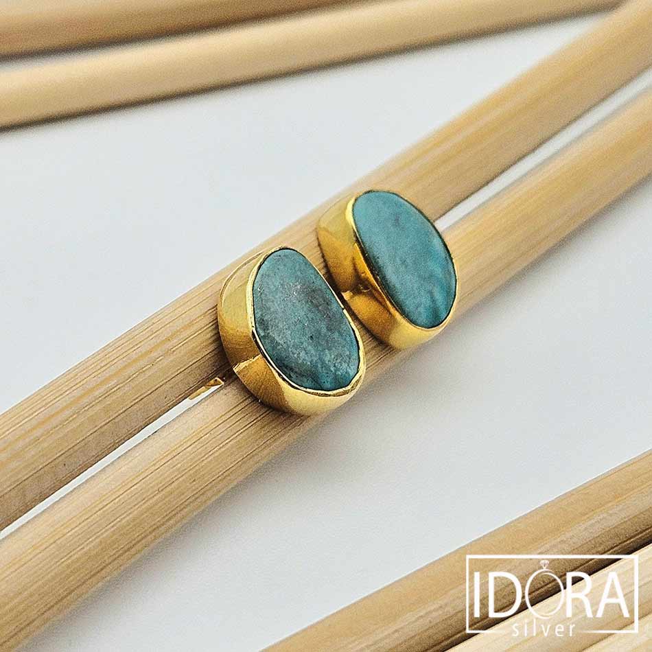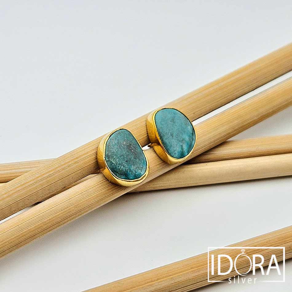 Уловени късчета небе в ТЮРКОАЗИ с жива повърхност и фини жилки в естествени нюанси, носещи в себе си дъха на далечни пустини и древни пътища. Обгърнати от топлината на позлатата, камъните изглеждат сякаш пазят тиха история, шепнеща за защита, свобода и вътрешна сила.