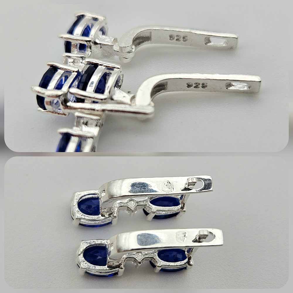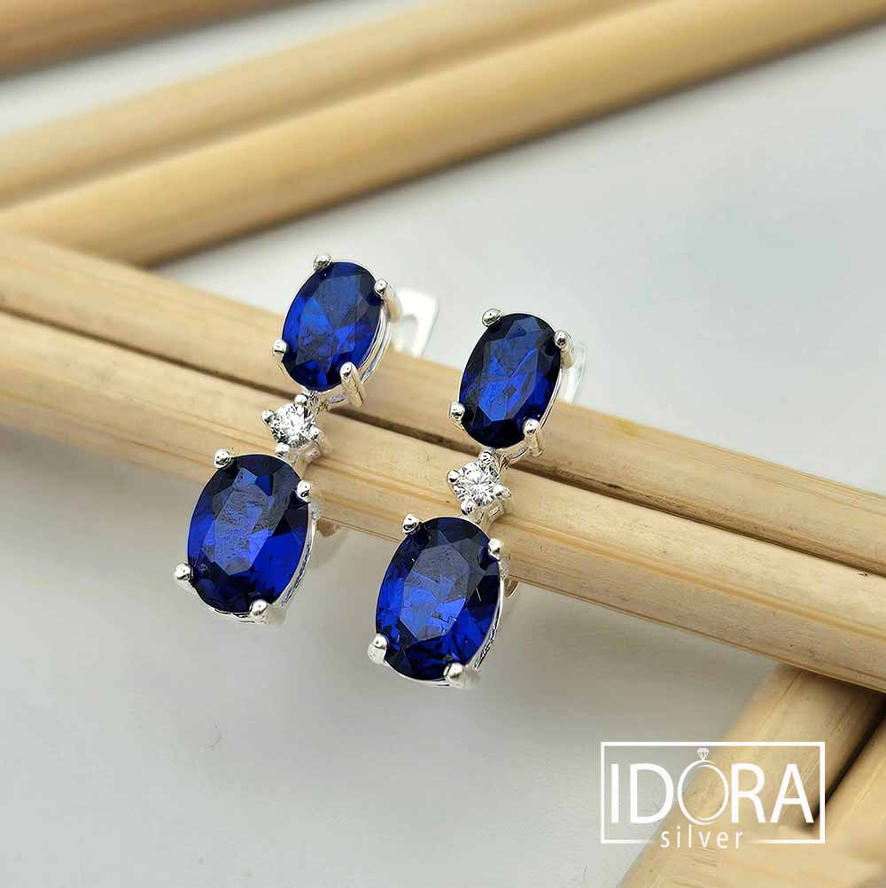 Сапфирено сини циркони – блестящ дует, превърнат в изящни обеци със стабилно английско закопчаване. Дълбокият им цвят, напомнящ нощно небе, е съчетан с изчистен дизайн, който подчертава тяхната красота и блясък.