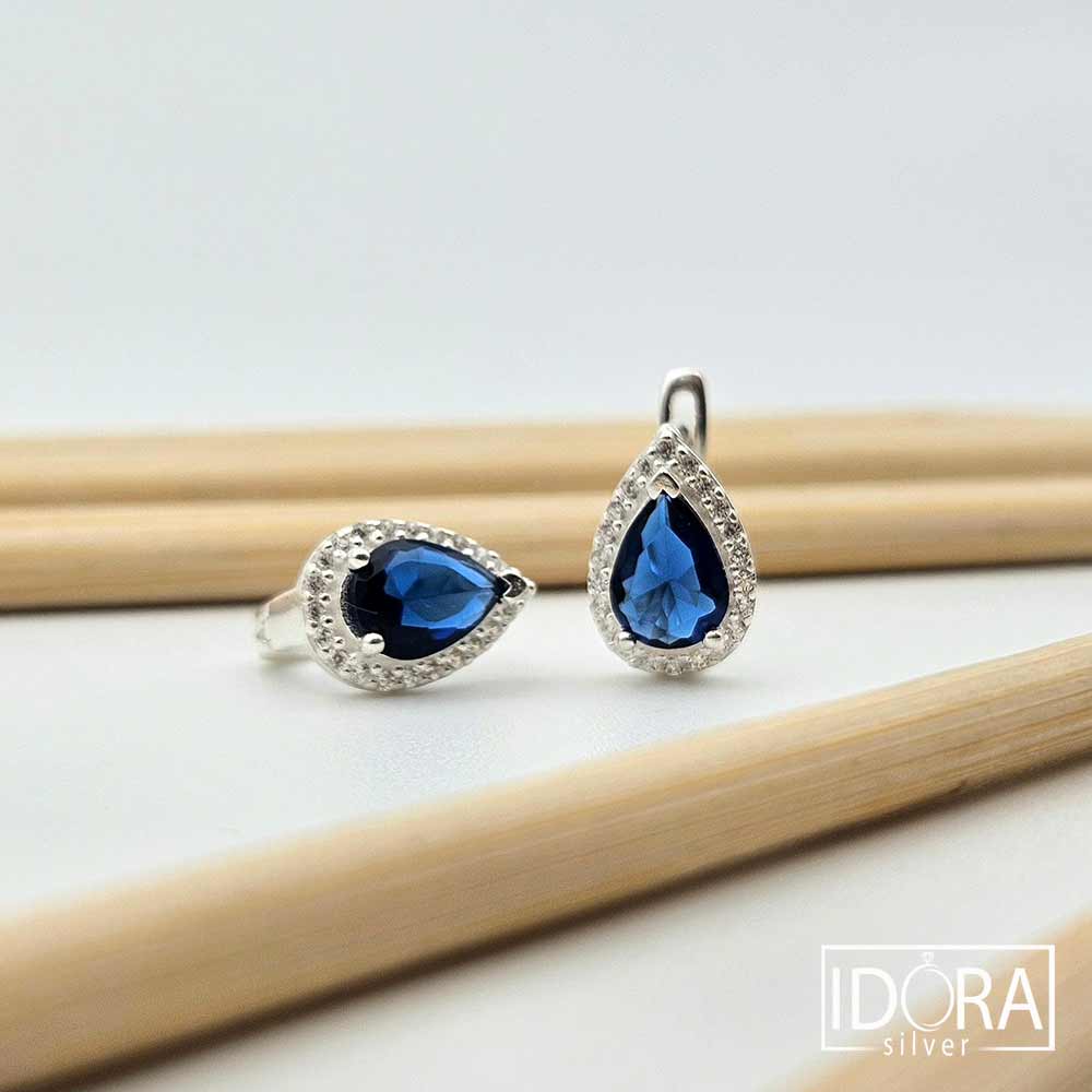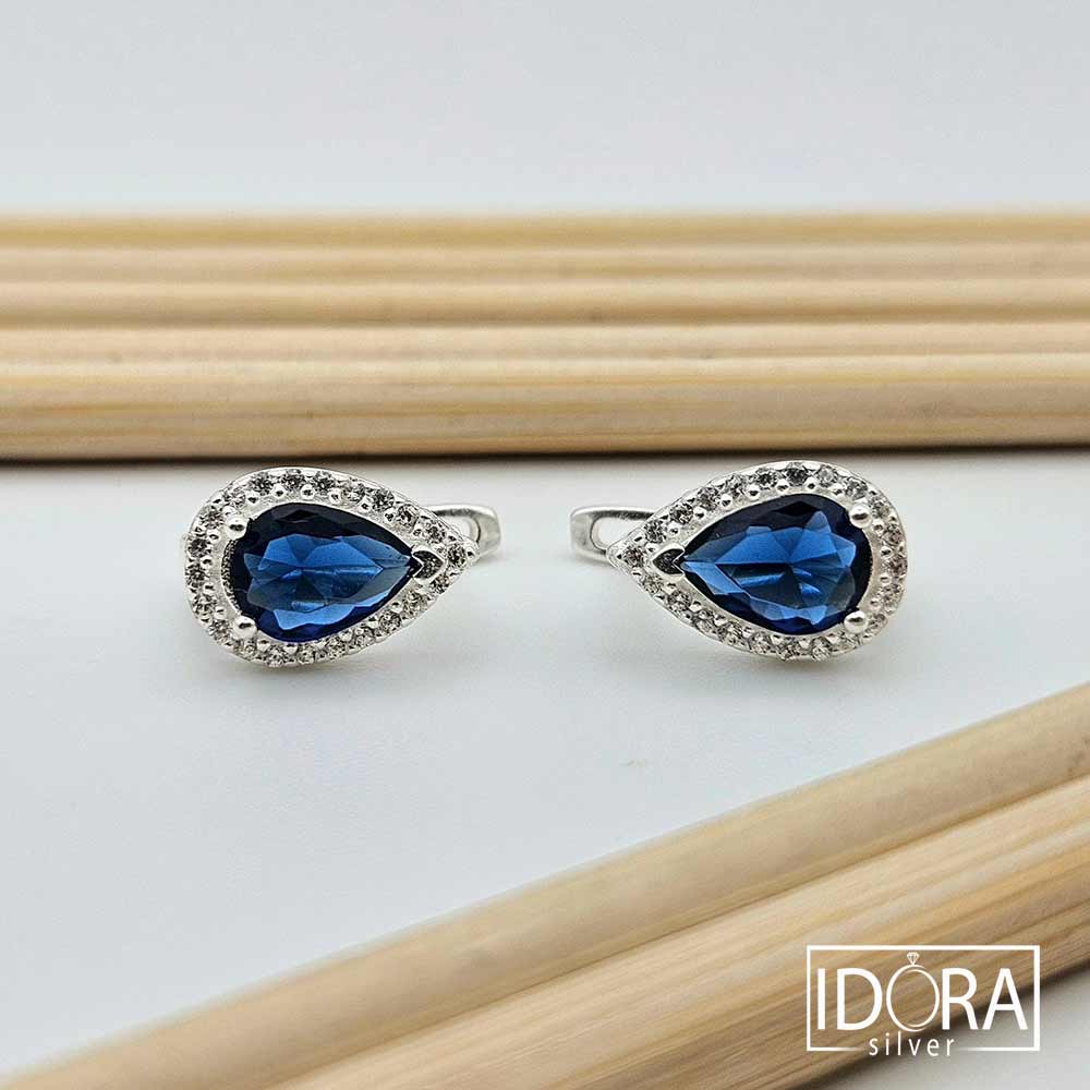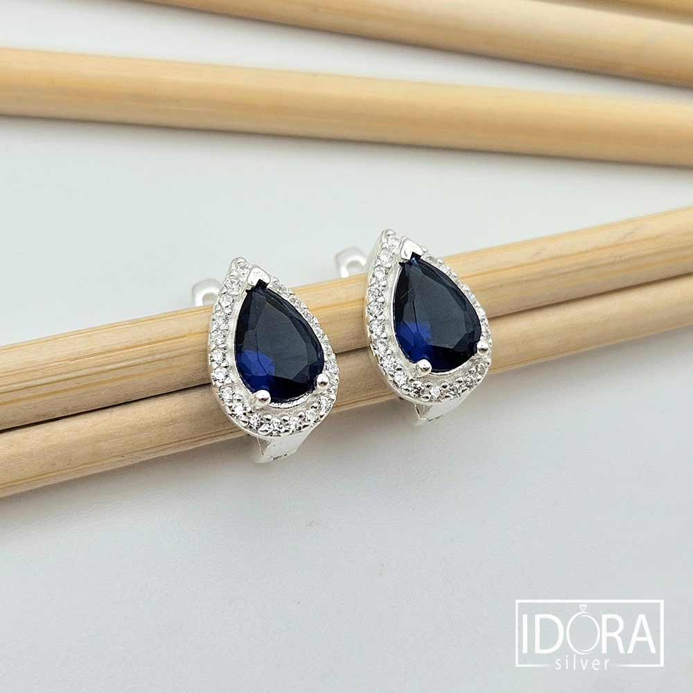 Цветна капка тъмносин ЦИРКОН, прегърнат от пътечка мини блясъци. Една неподражаема нежност, осигурена с английско закопчаване.