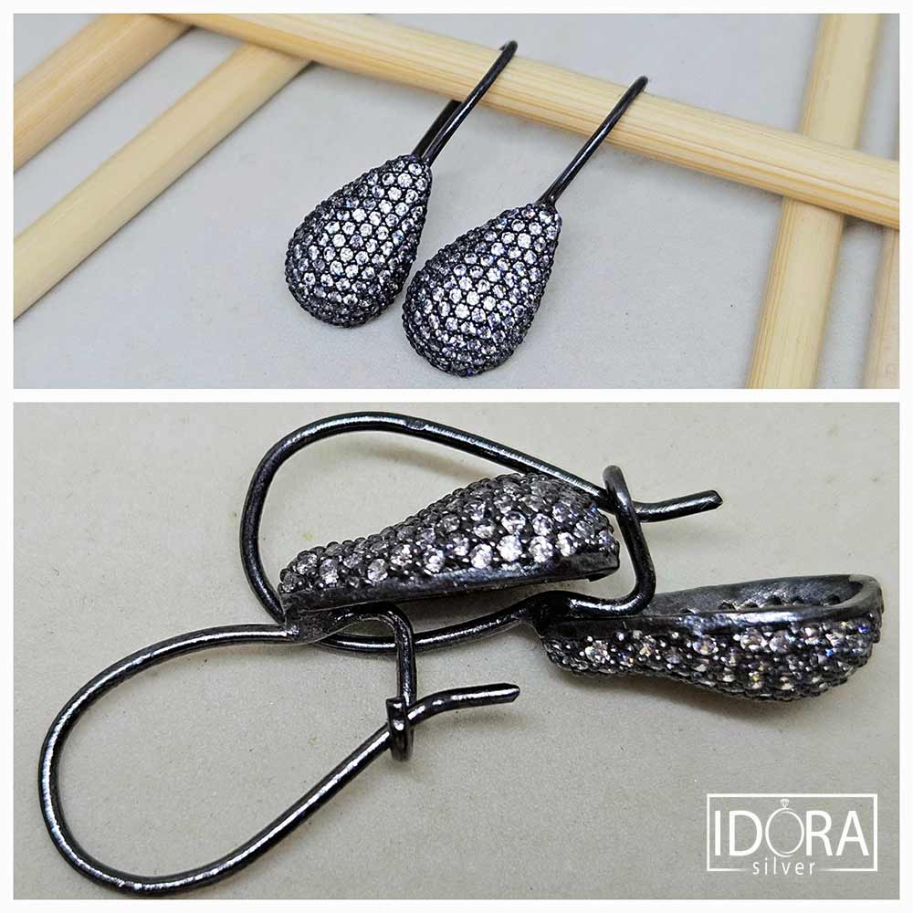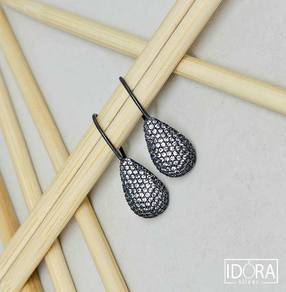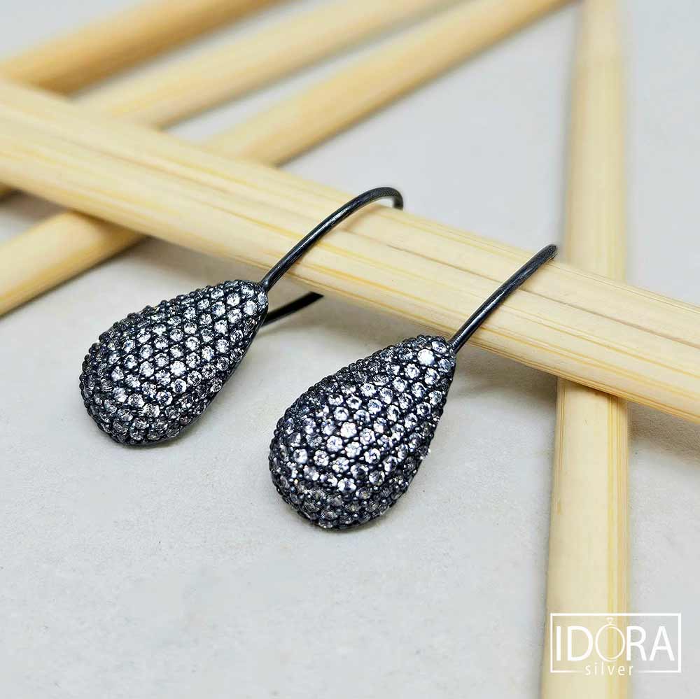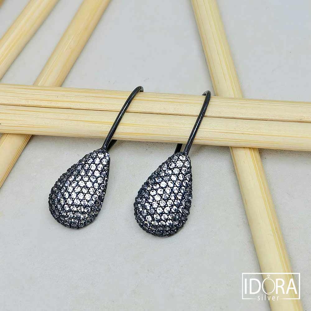 Сребърна капка в изящен модерен дизайн, обгърната от защитното сияние на черния родий и обсипана с феерия от блестящи циркони, улавящи всяка светлинка. Стил, блясък и сигурност – благодарение на стабилното закопчаване, превръщащо това бижу в изискан акцент за всяко настроение и повод.