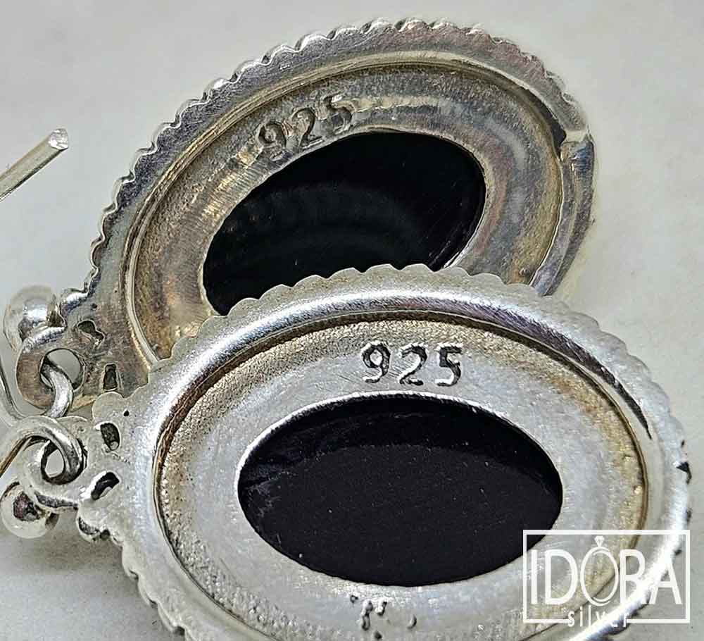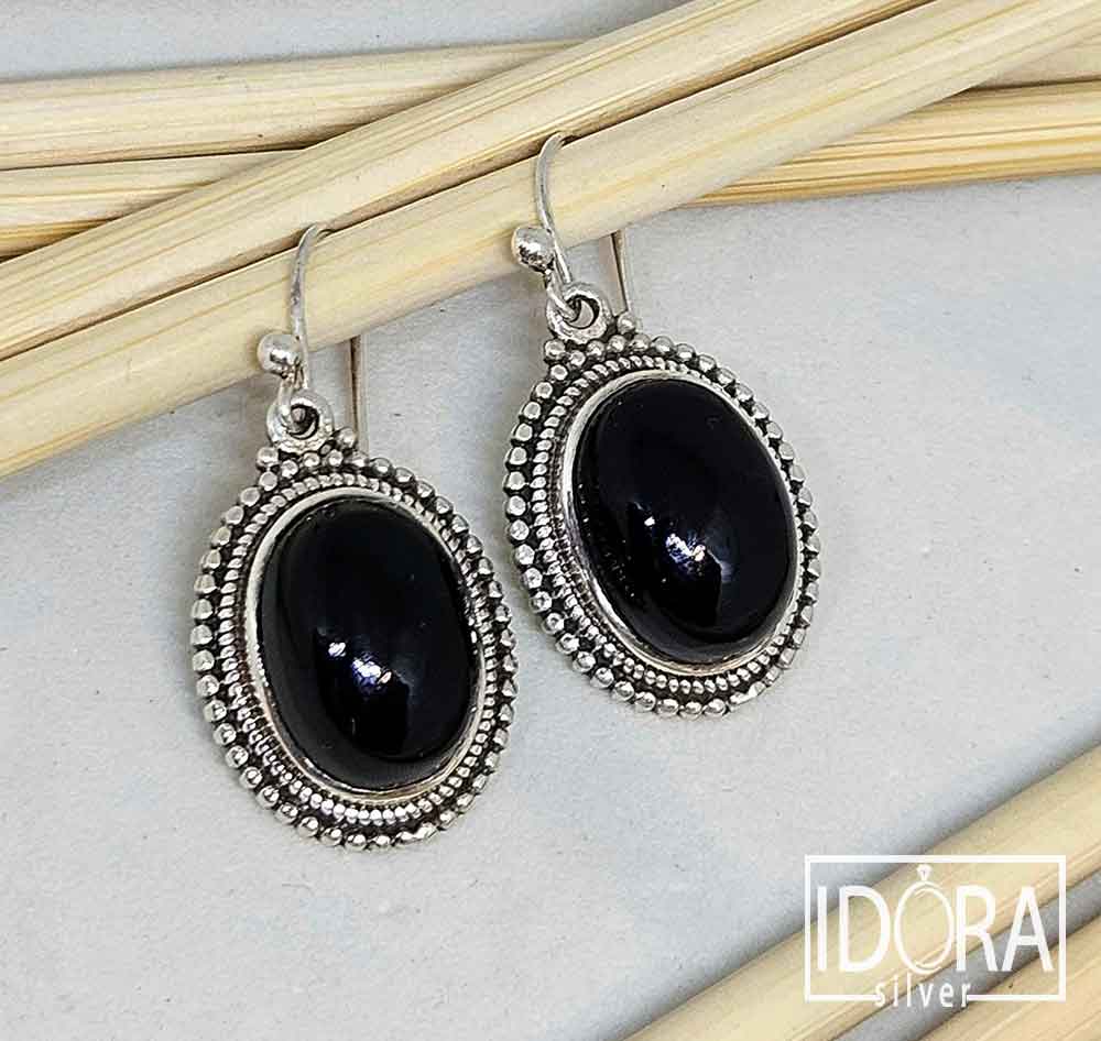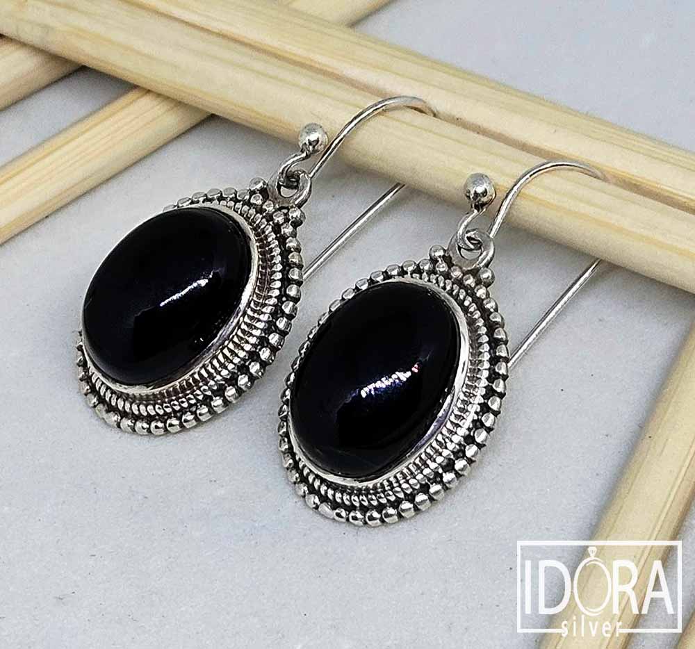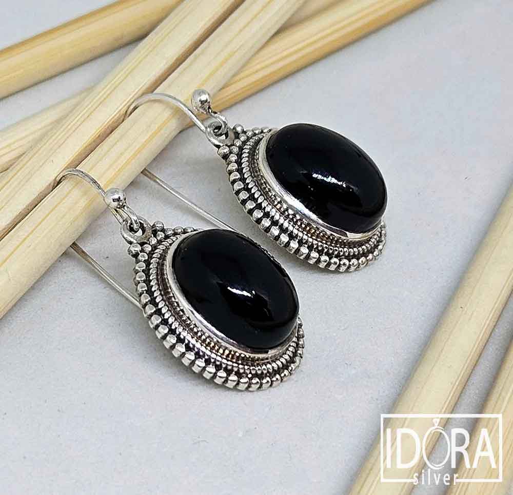 Обеци с овален черен оникс, излъчващ дълбочина и елегантност, нежно обгърнат от орнаментиран сребърен обков. Класическият дизайн, допълнен от фините декоративни детайли, придава на бижуто непреходна стойност и универсална привлекателност. Стилен акцент, който се вписва безупречно както в ежедневието, така и при специални поводи.