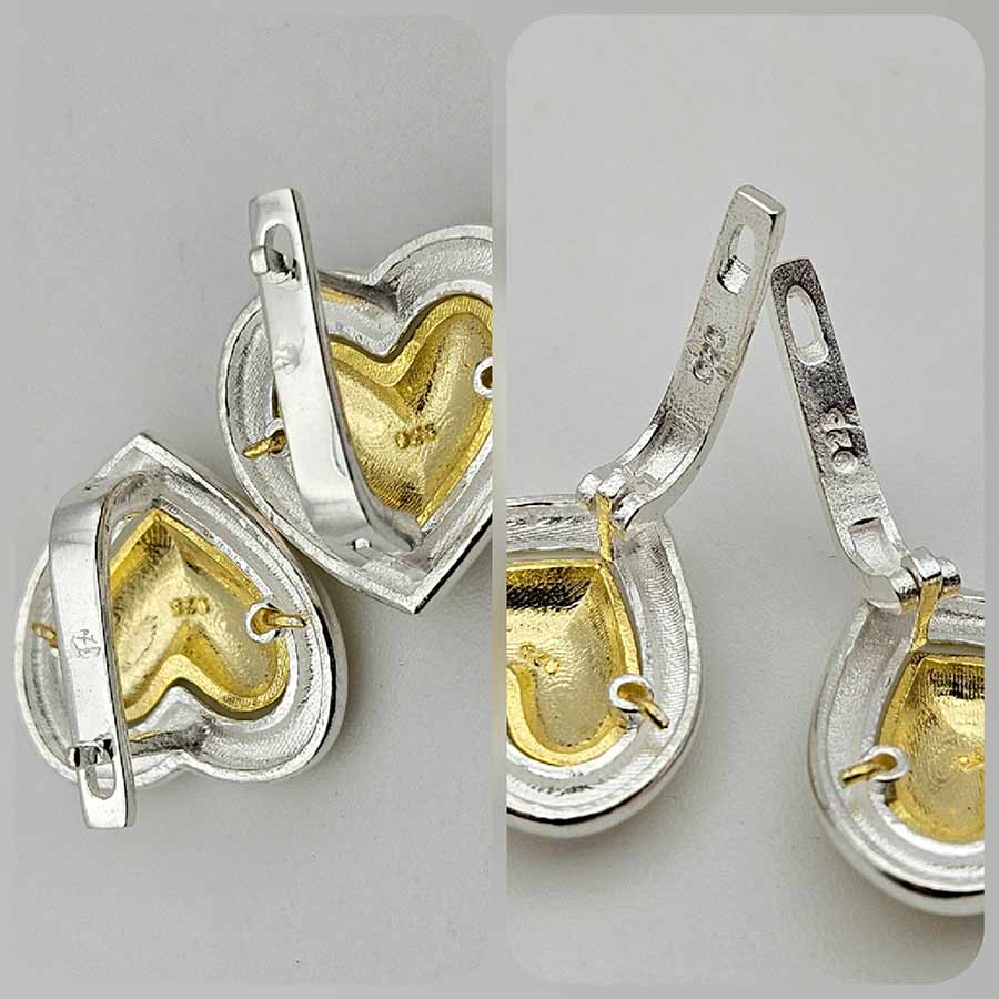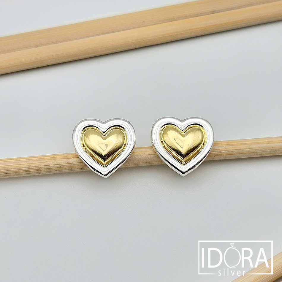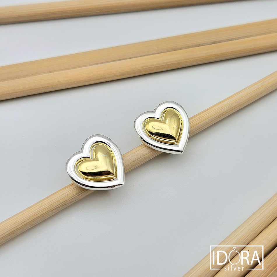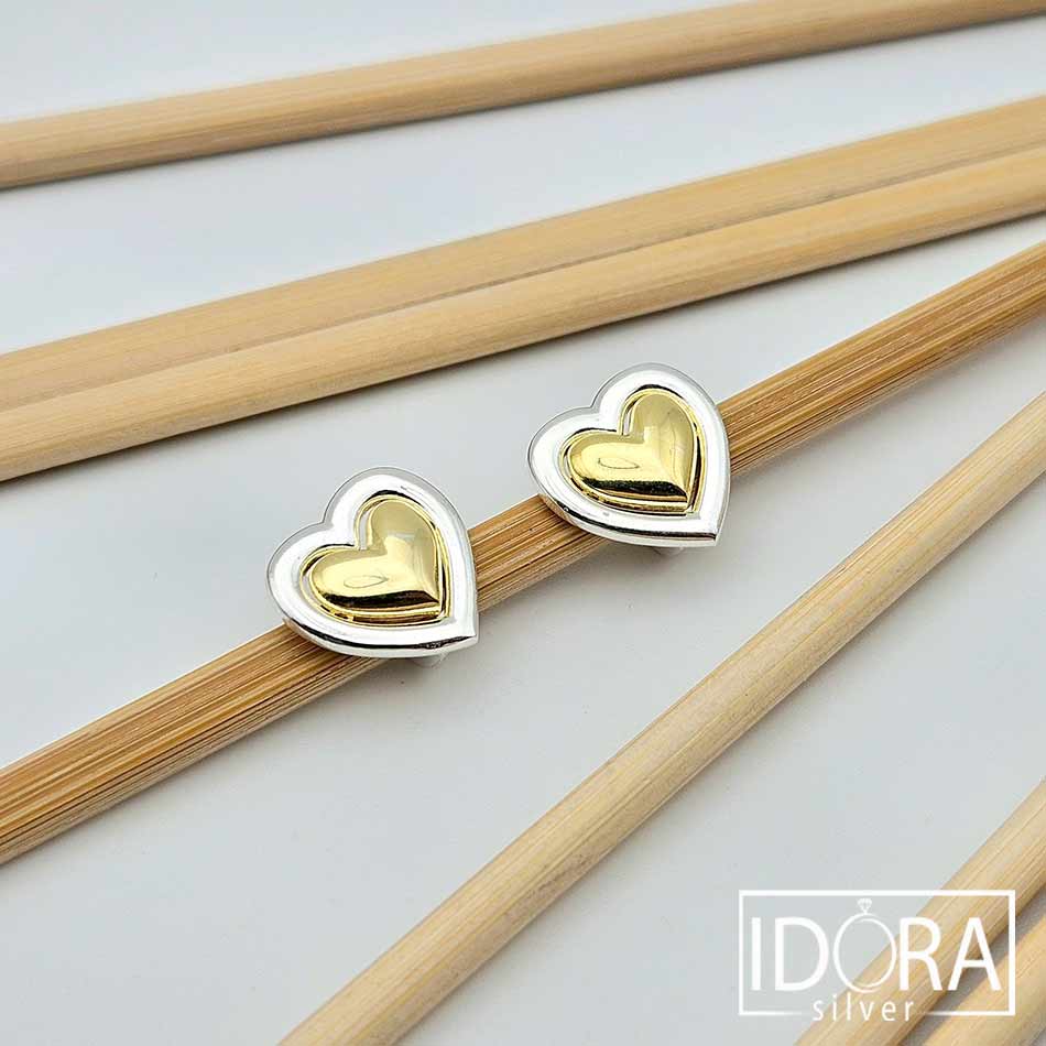 Незабравима нотка романтика и изтънченост в комбинация от топъл блясък от позлата във вътрешната част и рамкиращ сребрист кант, носещ изящен контраст, привличащ вниманието и подчертаващ формата на сърцето по впечатляващ начин, пълен със символика. Двуцветен дизайн с английско закопчаване, позволяващ съчетание с различни бижута.