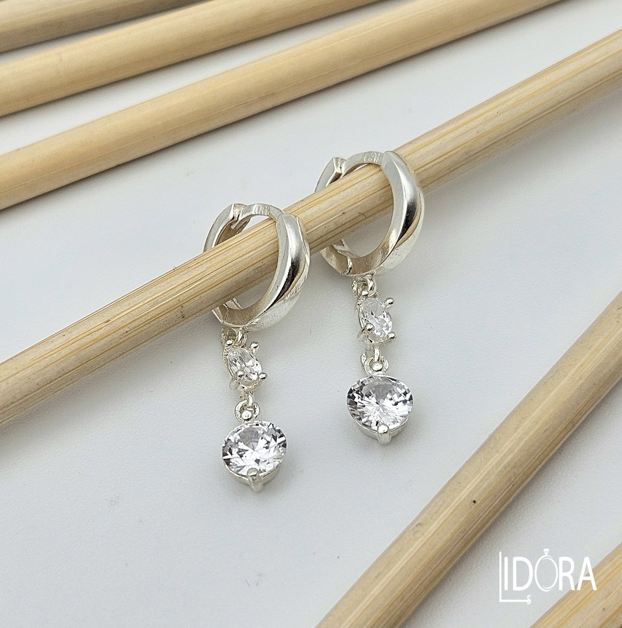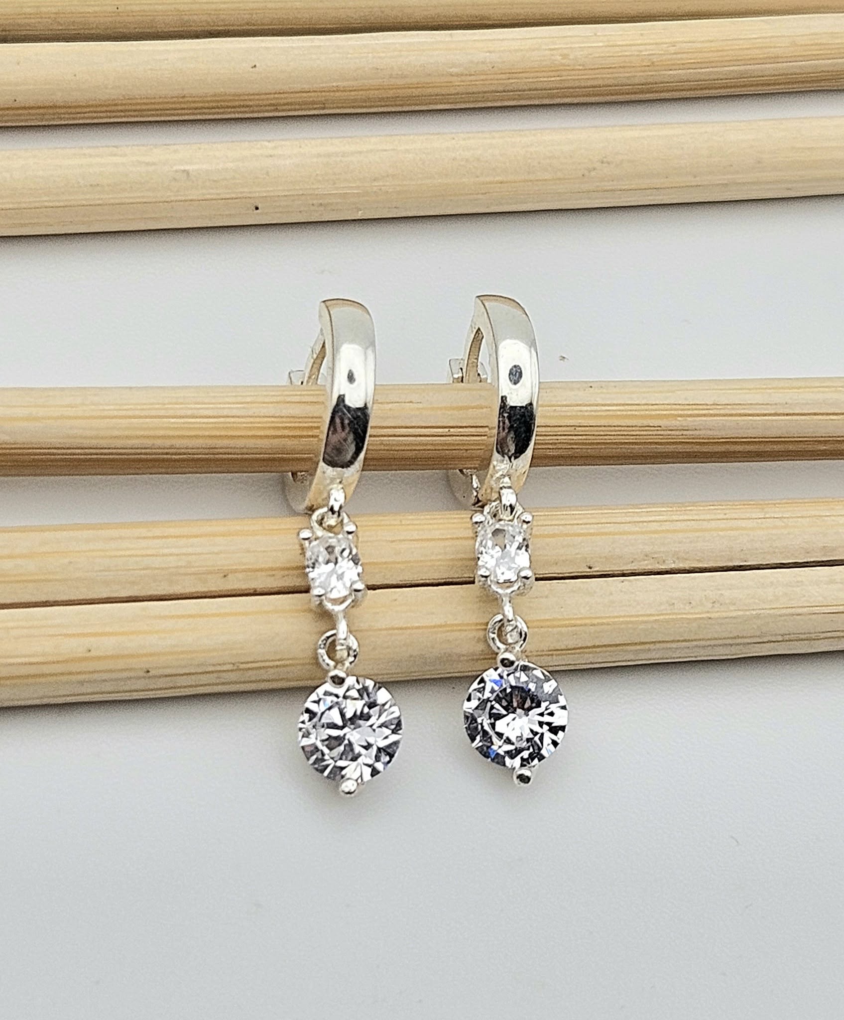 Деликатна елегантност и съвременен шик събрани в обръч със спускащи се блестящи циркони с прецизна фасетирана шлифовка. Изчистен, но луксозен дизайн съчетаващ класика с модерна естетика.