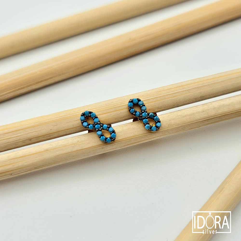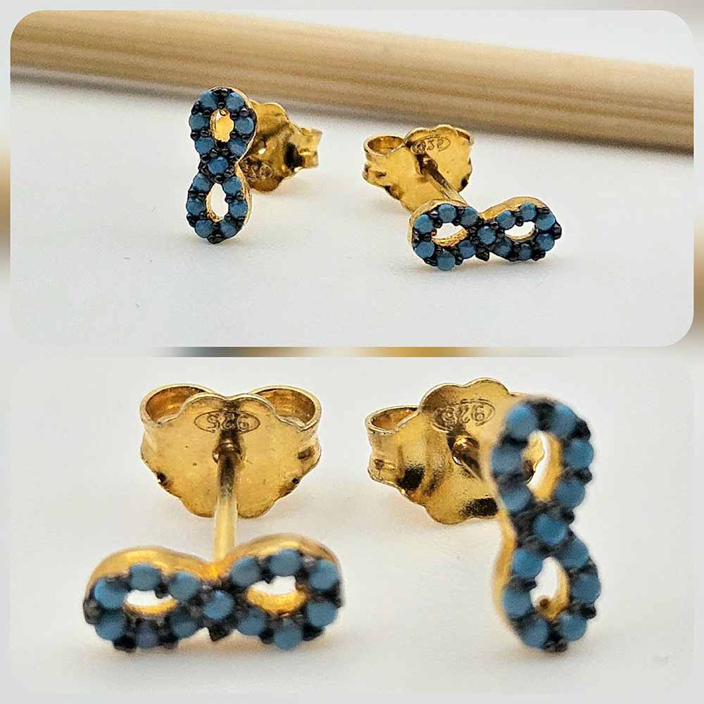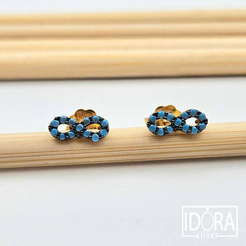 Символът на безкрая оживява в елегантна и съвременна интерпретация – деликатно изграден от миниатюрни тюркоази, инкрустирани с изключителна прецизност. Наситеният им цвят изпъква още по-силно благодарение на топлата позлата, която добавя мек блясък и изтънчено усещане за лукс. Всяка линия е изпипана с внимание към детайла, превръщайки това бижу в хармония между нежен минимализъм и символика с вечна стойност.