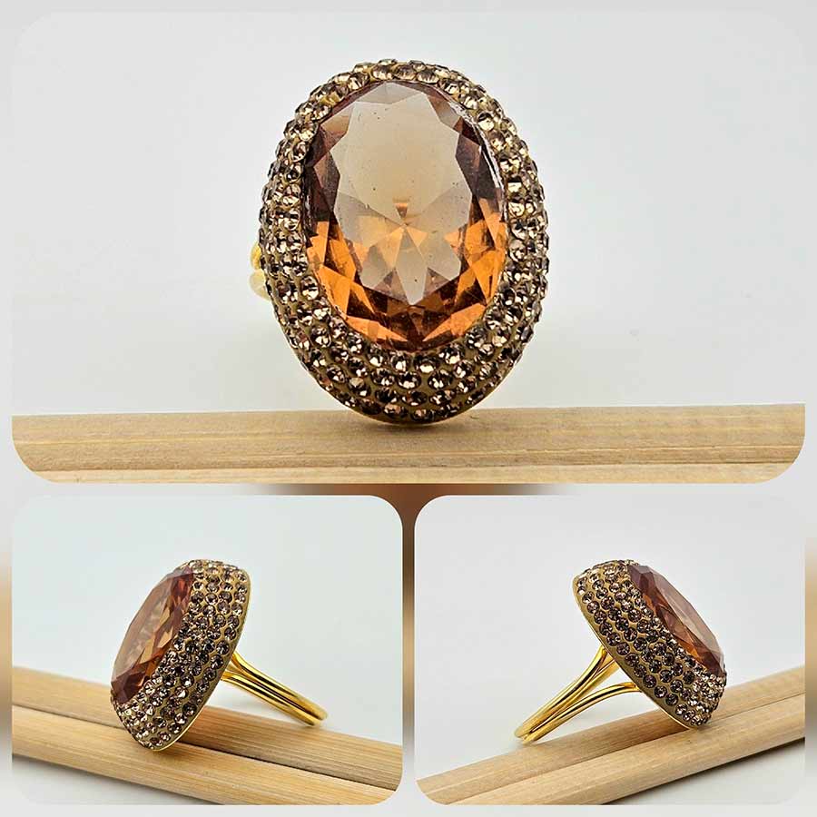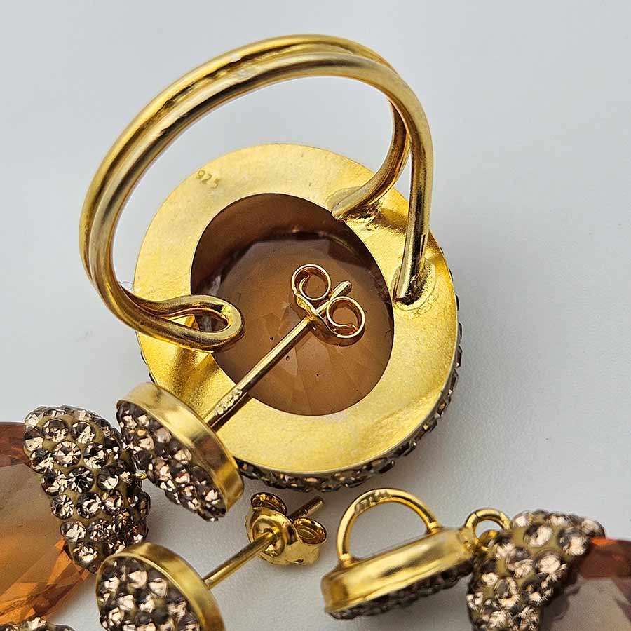 Размер: ринг регулируем, в момента 18,0 мм., корона 18,5×24,0 мм, обеци 30,0 мм., медальон 23,0 мм.