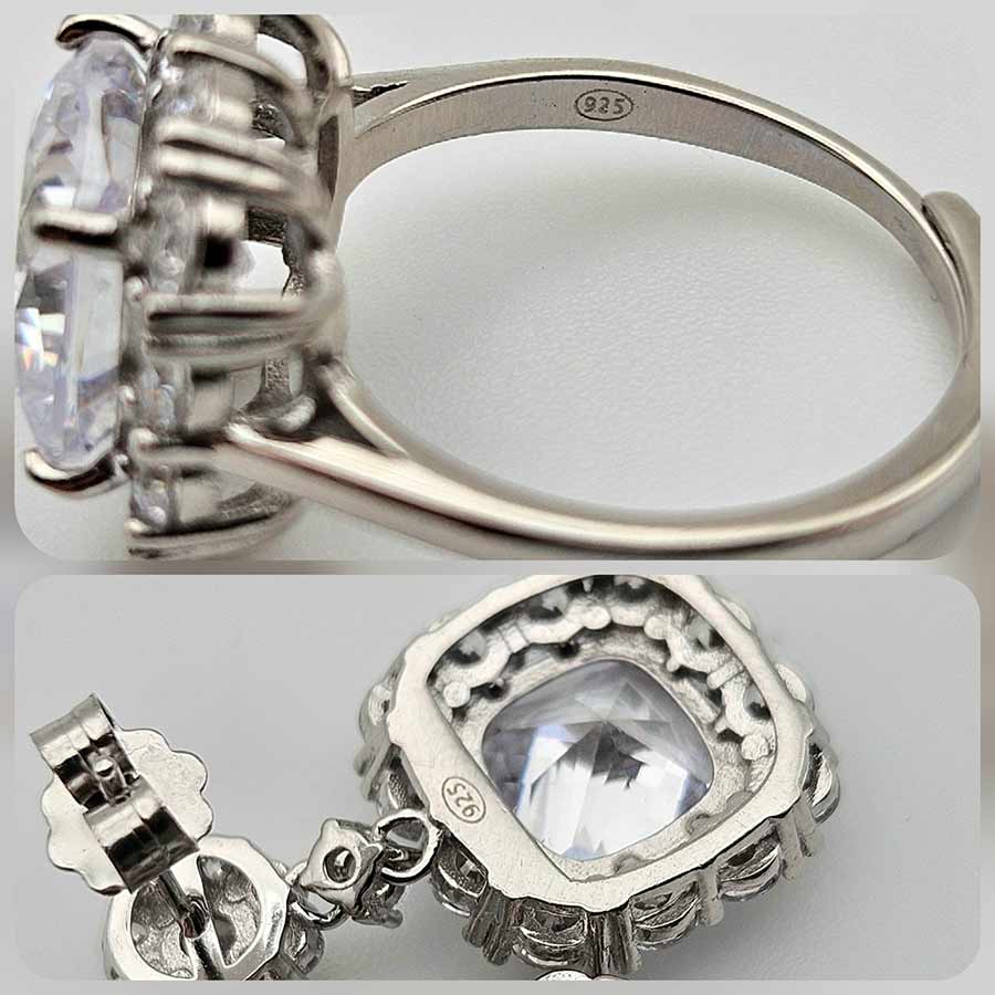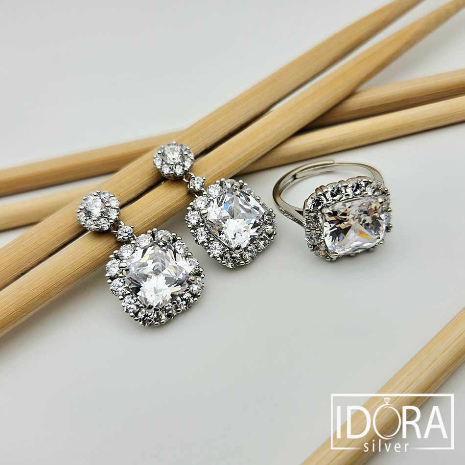 Размер: ринг 17,3 мм. в момента (регулируем), корона 14,7×14,7 мм., дължина обеци 27,0 мм.