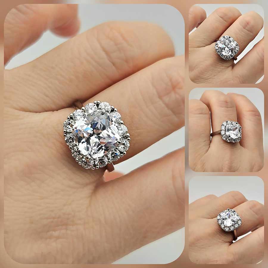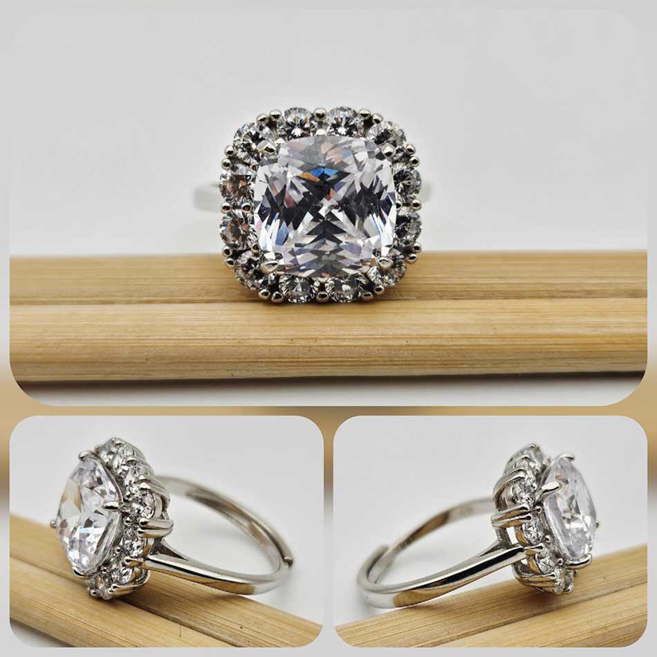 Чист блясък от светлина, играеща с разкошно фасетиран огромен ЦИРКОН като основна, фокусираща вниманието светеща фигура, заобиколена от малки циркони, в сериозна надпревара за внимание.